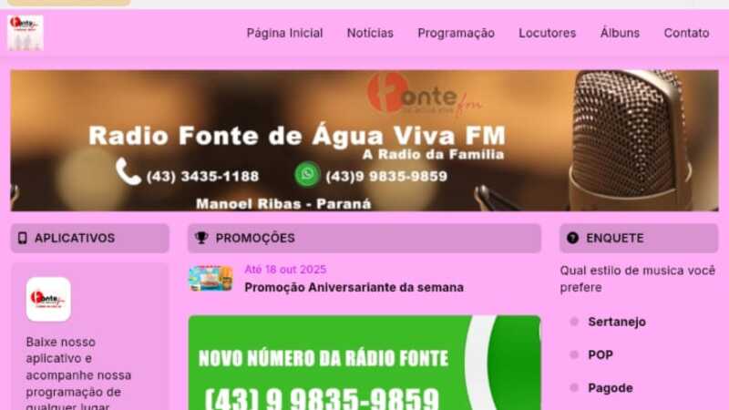 Site da rádio Fonte FM muda de cor em incentivo ao Outubro Rosa, o mês de conscientização na prevenção ao câncer de m...